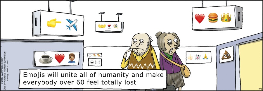 by The GoComics TeamEmoji are, by any measure, the greatest sociological, technological and spiritual achievement of the late 20th and early 21st centuries. Invented in Japan in the '90s as a kind of advancement for text-based smileys, smartphones like the iPhone and Android devices popularized the Unicode characters to the point that now they're constantly advancing to suit the needs of... every single person on the planet. Seriously. Do you remember when your parents started texting you with emoji unironically? We live in the Emoji Era. The Emoji Age. This is the dawning of the Age of Emojiokus.
